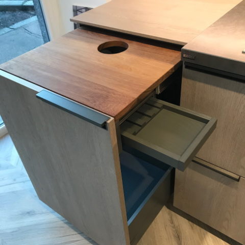 Base estraibile con tagliere in legno e portacoltelli