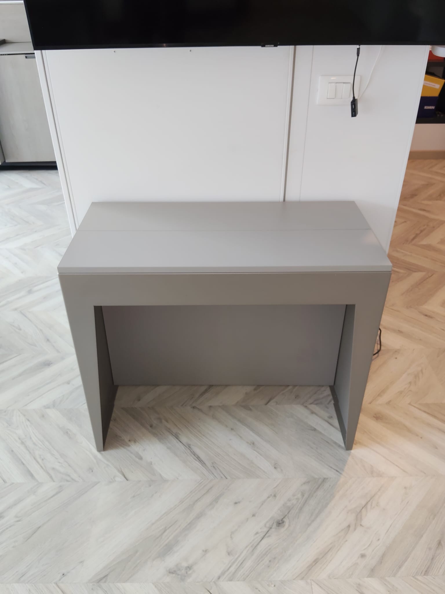 Struttura in metallo laccato Grigio Tortora, finitura top e allunghe in laminato Grigio Tortora.